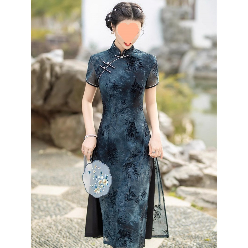 ハイエンドエスニックスタイル2025若い女の子ブロンズメッシュ改良版チャイナドレス超スリムドレス