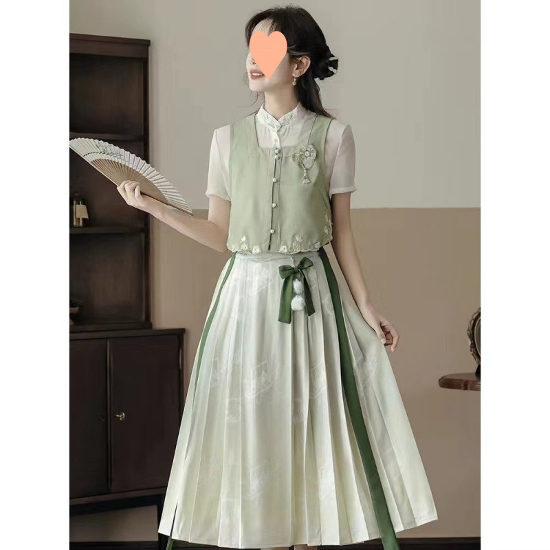 新しい中国風の女の子のシャツとベストスーツグループ2025新しい夏の改良された日常的な漢要素の2点セット