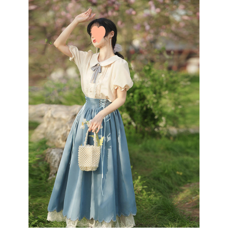 フレンチレトロカレッジドールカラーシャツスカート逃亡王女ライトloデイリーツーピーススーツシャーロットロリータ