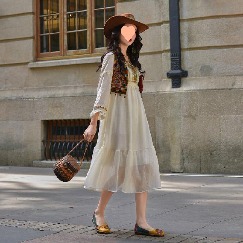 砂漠エキゾチックエスニックスタイルチベット新疆草原旅行服休暇旅行写真ボヘミアンドレス