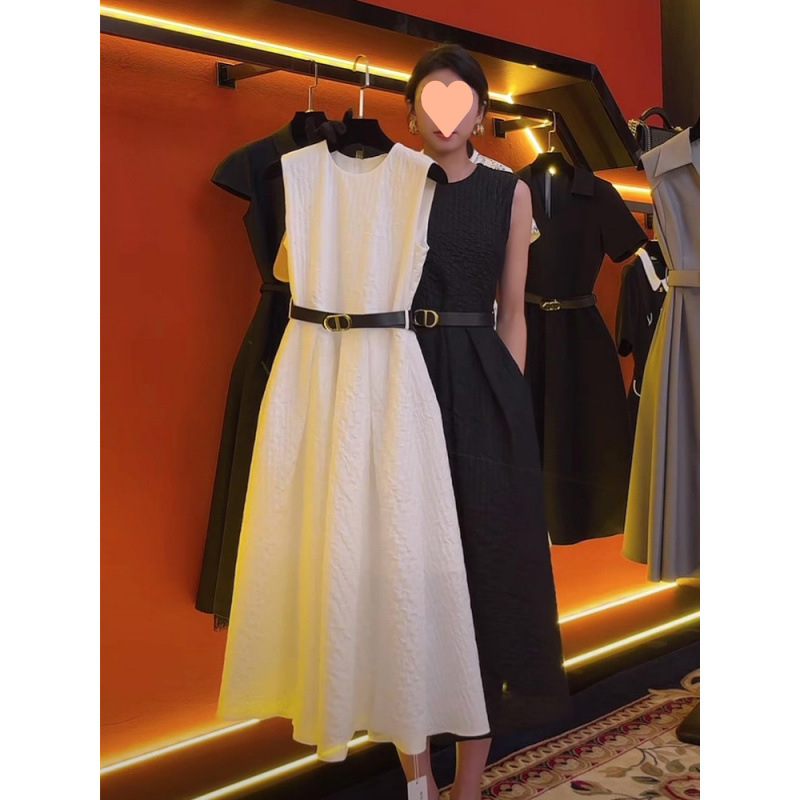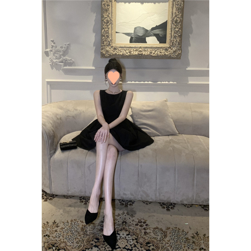 ドレスレディースフレンチヘップバーンセレブスタイルブラックハイエンド春新作ウエストノースリーブベストパフスカート
