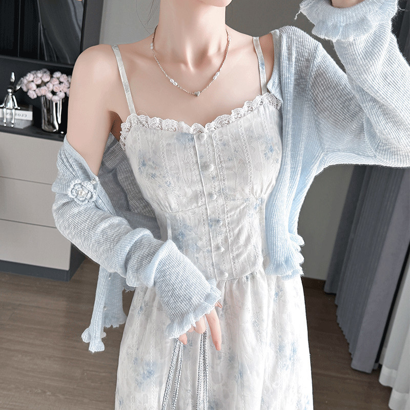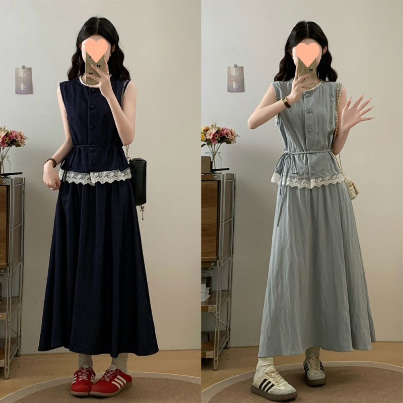 レースステッチベスト+スカート2点セット ロングスカートスーツ レディース フレッシュ シンプル 通勤 ニッチ