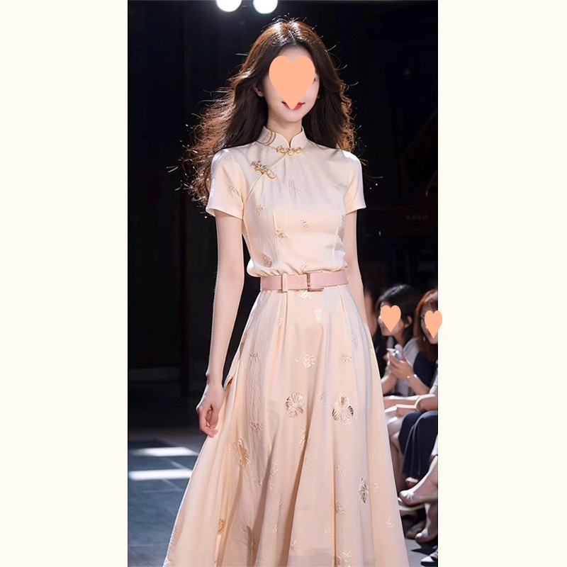 新しい中国風の女性のアプリコットドレス改良されたチャイナドレス2025新しい夏の若いスタイルのハイエンド