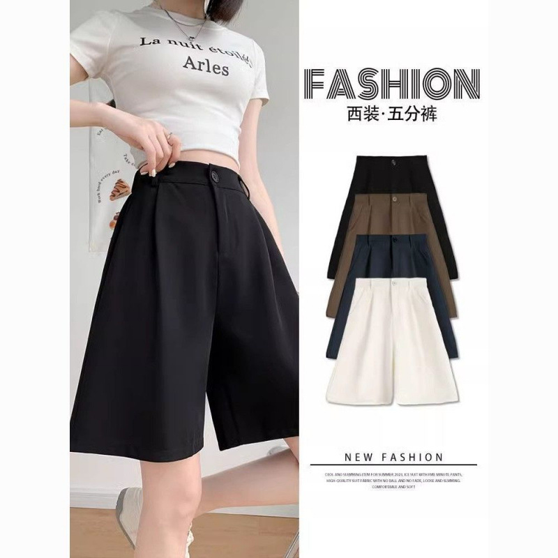 スーツショーツ レディース 夏 薄手 2025新作 ハイウエスト ゆったり 痩身 Aライン ワイドレッグ 5点 小柄 5点パンツ