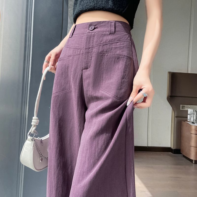 ウメパープルテンセルリネンワイドレッグパンツ女性の夏薄い 2025 新しいスタイルアイスシルクコットンとリネンスーツパンツ
