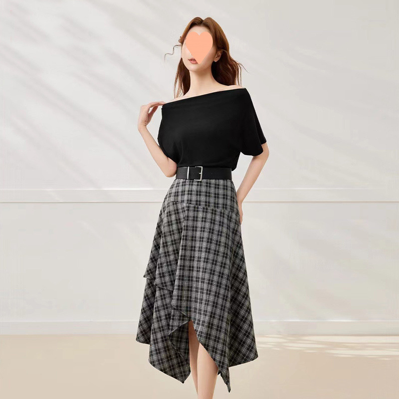 女性のための西洋スタイルスーツ 2025 夏の新しいファッションツーピースチェック柄スカートワンラインカラー通勤スタイル上下セット