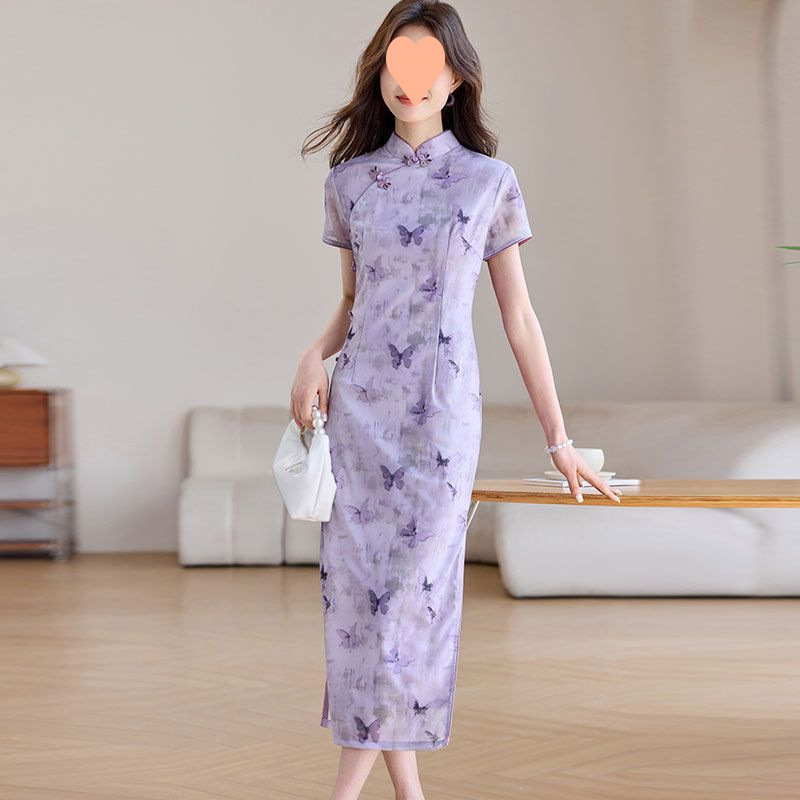 紫色の新しい中国風改良チャイナドレス婦人服 2025 夏の新しいレトロな国民風日常着用スカート