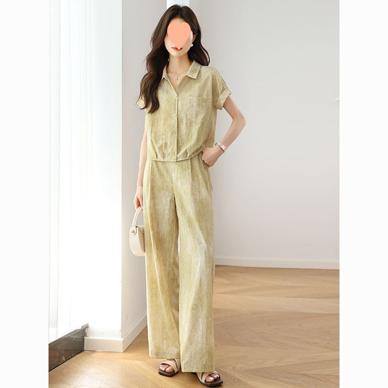 ファッションスーツ女性の夏薄い 2025 新しいスタイルレディスタイルカジュアル半袖シャツワイドレッグパンツ 2 点セット