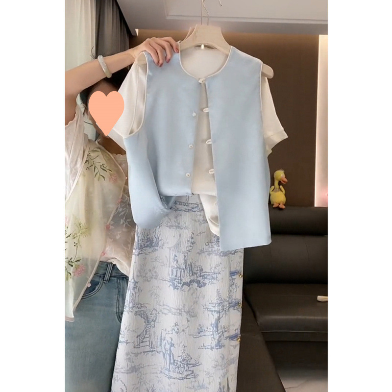 新しい中国風の女性の中国風のベストトップライト高級ハイエンドスーツチャイナドレスサマードレス 2025 新しいスタイル