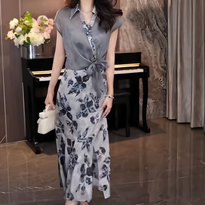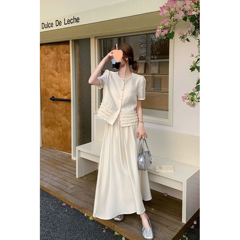 Xiaoxiangfeng スーツスカート女性の夏の 2025 新しいフレンチスタイルドレスカジュアル半袖スカート 2 点セット