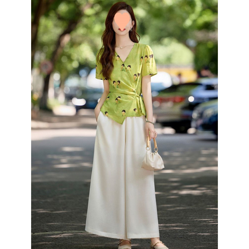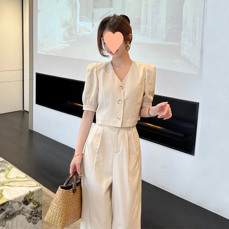 フランスの高級フレグランススーツ女性用夏ゆったりスリムストレートワイドレッグパンツトップ女神風2点セット