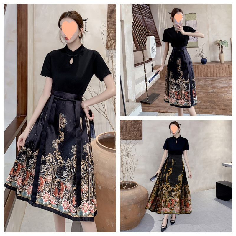 漢服トップスと新中国風馬面スカート夏の高級痩身新しい小半身スーツスカート