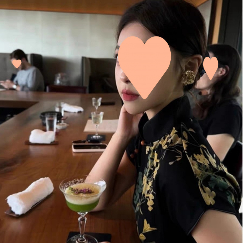 中国風のファッショナブルな黒のチャイナドレススリムスタンドカラーダークパターンジャカードボタン改良版チャイナドレス女性のための春と夏の新作