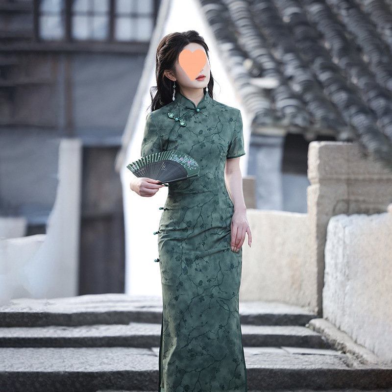 蘇州版チャイナドレス 2025 新しい気質ハイエンドヤングスタイル改良された女の子のドレス春と夏のショールグリーン