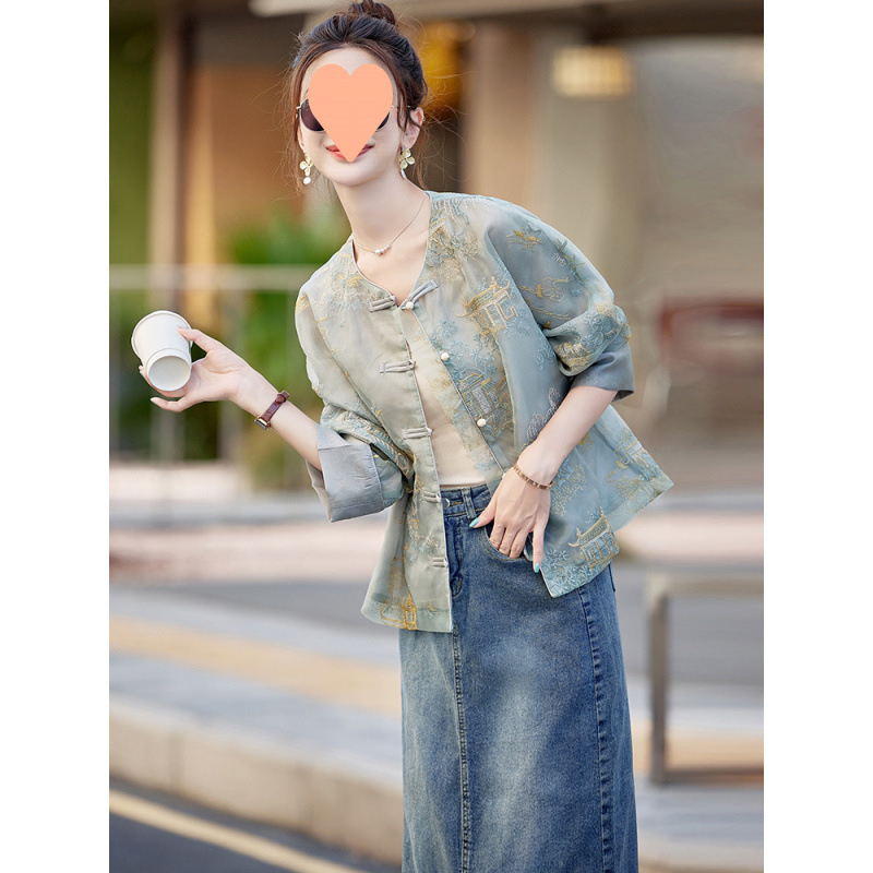 [ストアホットセール] 新しい中国風のジャケット女性の夏 2025 小さな新しい多用途ジャカード唐スーツ薄いアウター