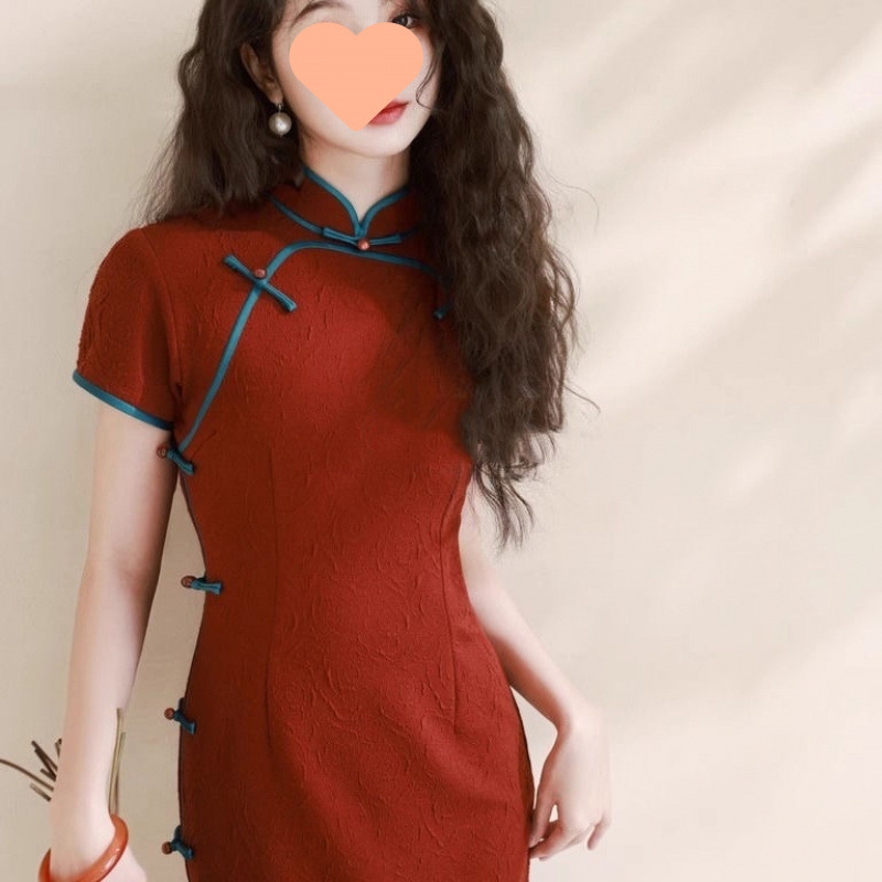 新しい中国風のレトロなプリント改良されたチャイナドレス女性の夏の新しい中華民国スタイルのエレガントなスリムフィットドレス