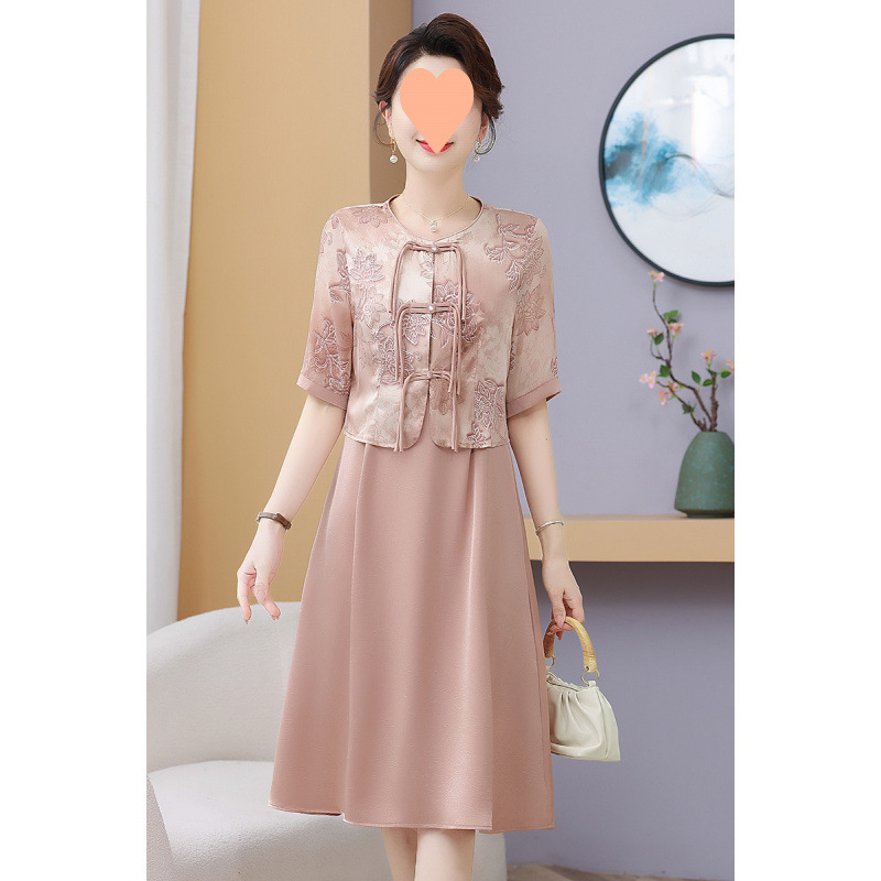 お肉をカバーする高級ママサマードレス2点セット、50歳中高年義母の結婚式の披露宴ドレス、チャイナドレス