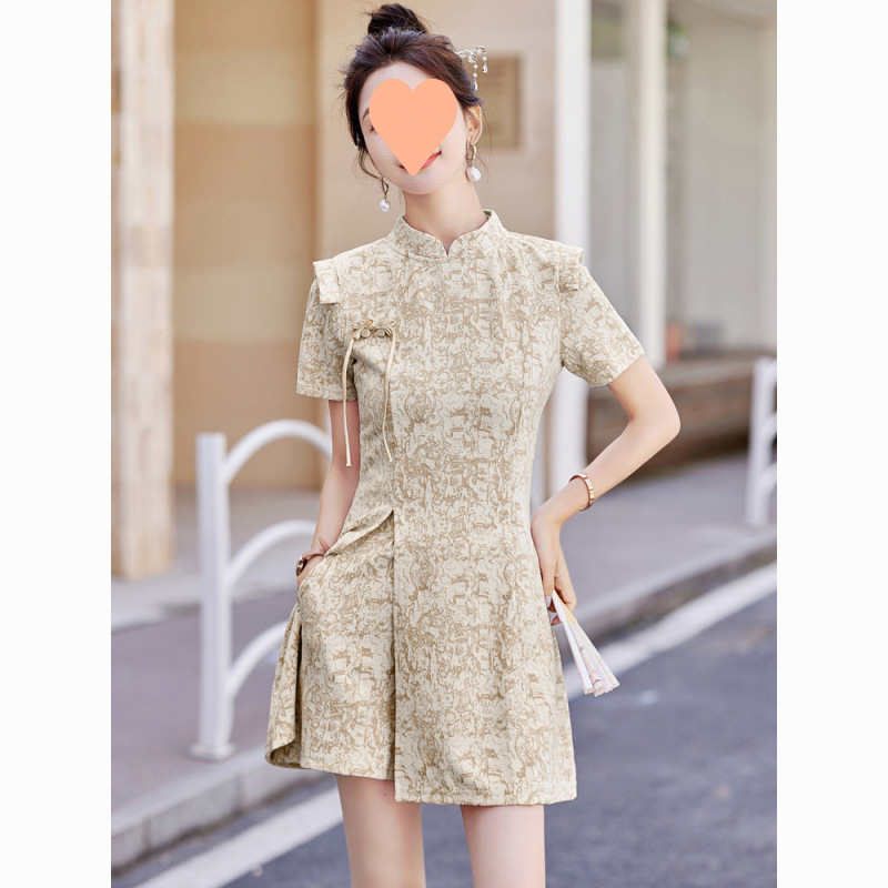 新しい中国風の女性用スーツ、夏のレトロファッション改良されたチャイナドレス、スリムフィット、肉感カバートップとショーツの2点セット