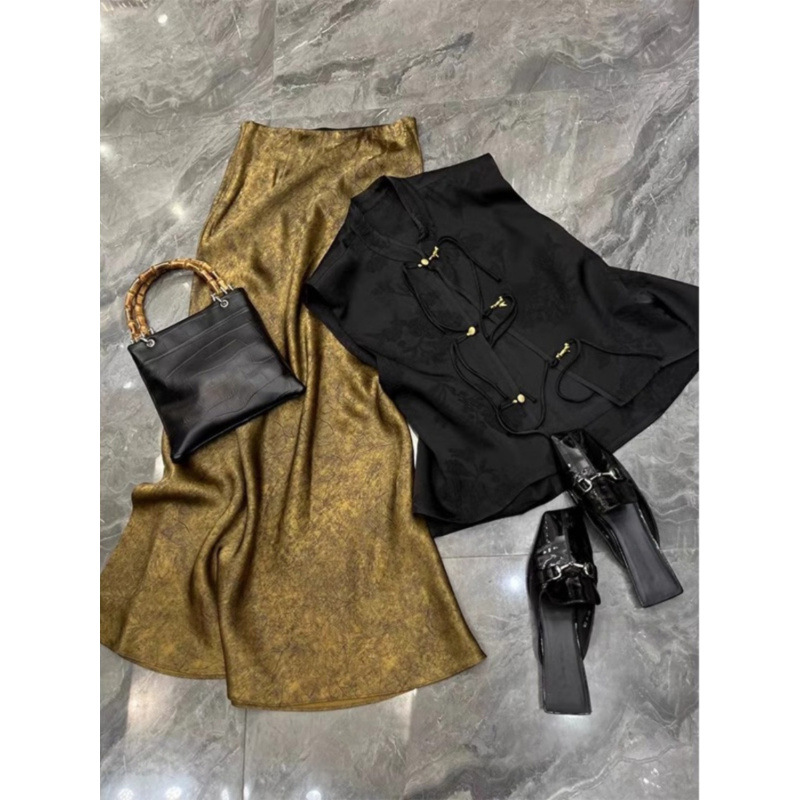 新しい中国風の女性の社交界の女性の気質ハイエンドの中国風のボタン付きベスト 101.2kg ピース夏の新しいスーツスカート