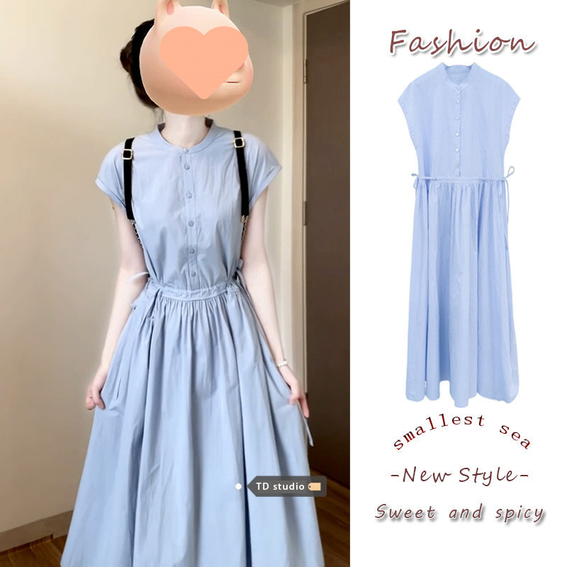 フレンチブルー半袖シャツドレスレディース2025年夏新作ハイエンドウエスト痩身ロングスカート
