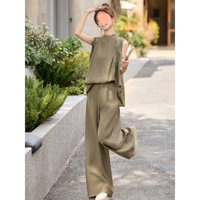 ノースリーブベストワイドレッグパンツスーツ女性のための 2025 夏の新しいファッション気質西洋スタイル年齢軽減快適なカジュアル 2 点セット
