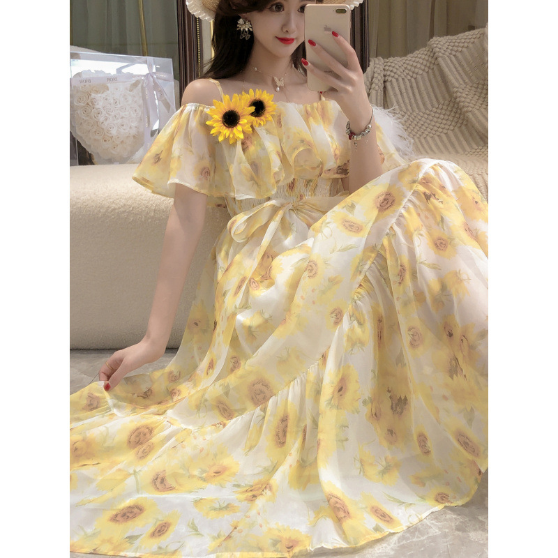 甘いワンショルダー花柄フリルスカート、優しい気質、リゾート風チュチュスカート、フレンチシーサイドビーチスカート