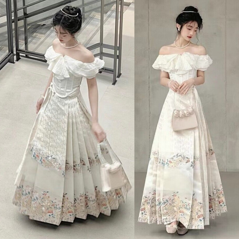 プラスサイズファットmm新しい中国風漢服女性のレトロな中国風ワンショルダートップ馬面スカートスーパー妖精スーツ100kg