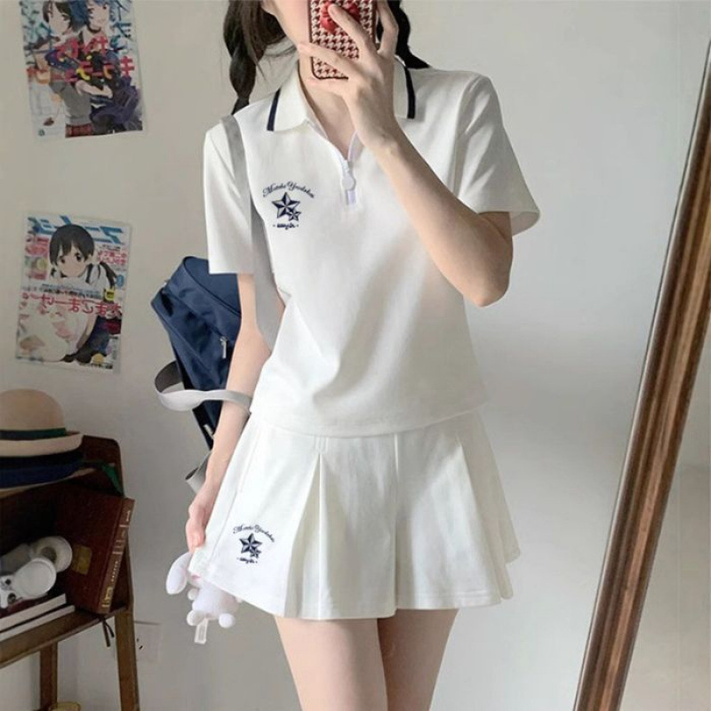 JK 制服 100% off スタープリーツファッションパンツスカート半袖 Tシャツウエストポロシャツカジュアルスポーツスーツ女性の夏