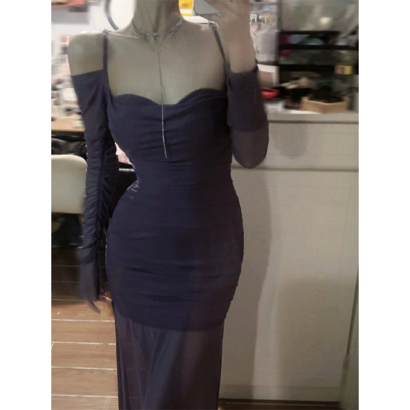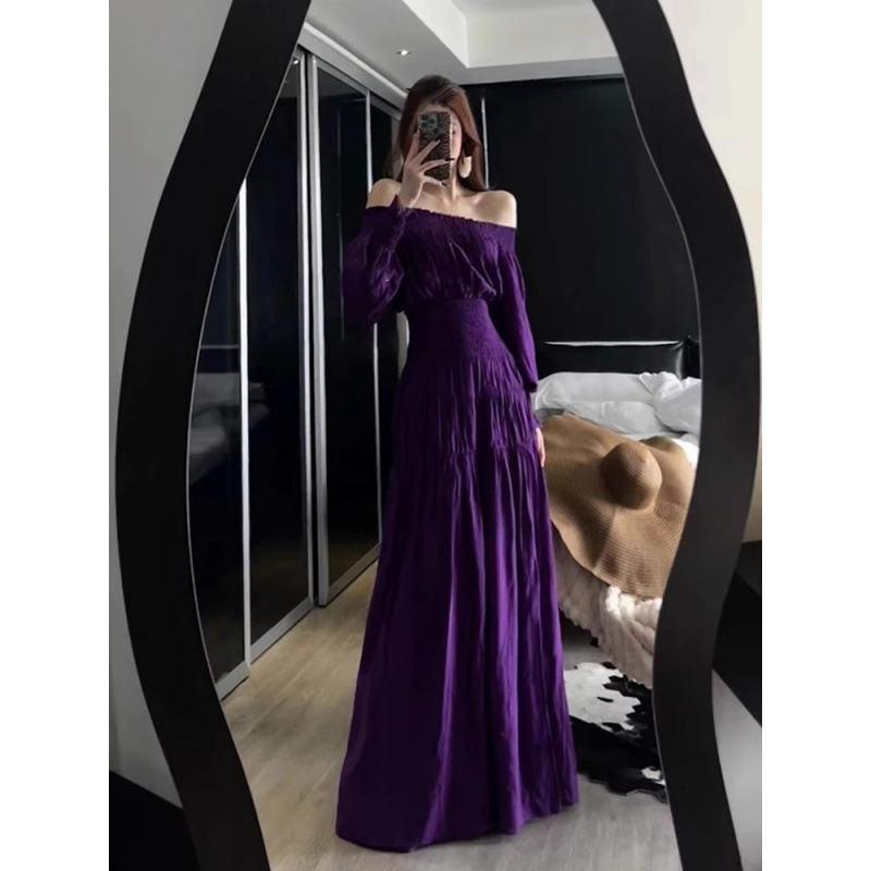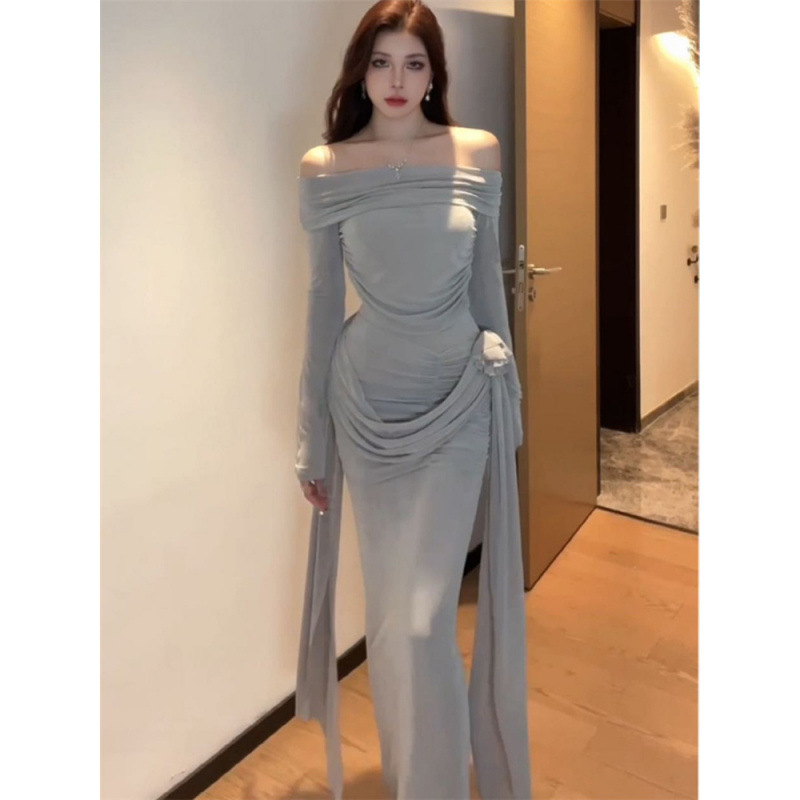 少し太ったmmフレンチライトラグジュアリーハイエンドワンラインカラー長袖ウエスト痩身トレーリングデザインヒップカバーロングドレス