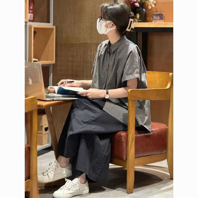 夏の新しい文学風のインターネットセレブ気質の女性用多用途シャツ、ハイウエストで股をカバーし、半身をスリムに見せます