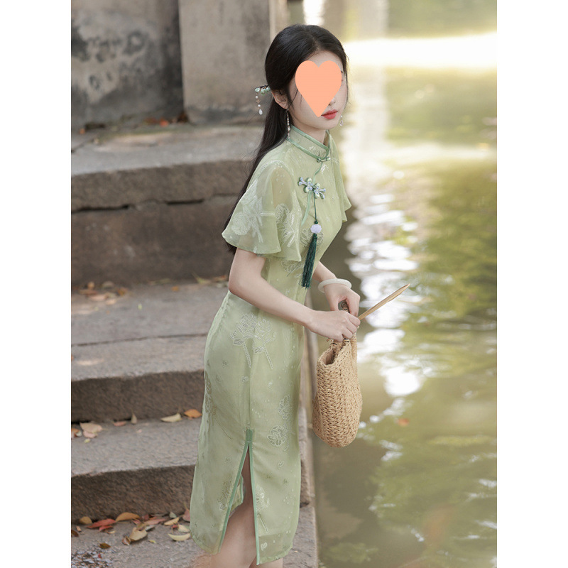 グリーンチャイナドレス2025新しい夏の改良された若い女の子の小さな新しい中国ドレス大学入学試験用