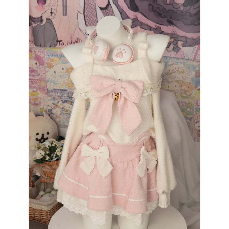 冬の新しい韓国風カレッジスタイルリボンピュアデューショルダーニットショートトップ