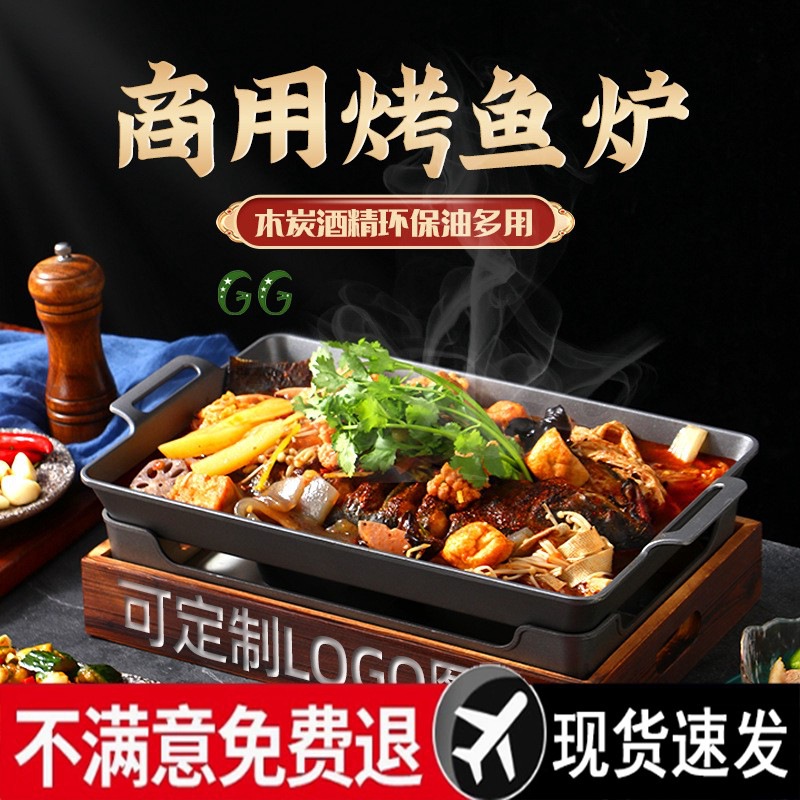 業務用焼き魚ストーブ、木炭アルコール、環境に優しいオイル、ノンスティック底焼き魚プレート、レストランウイバードライボイラー、シーフードプレート