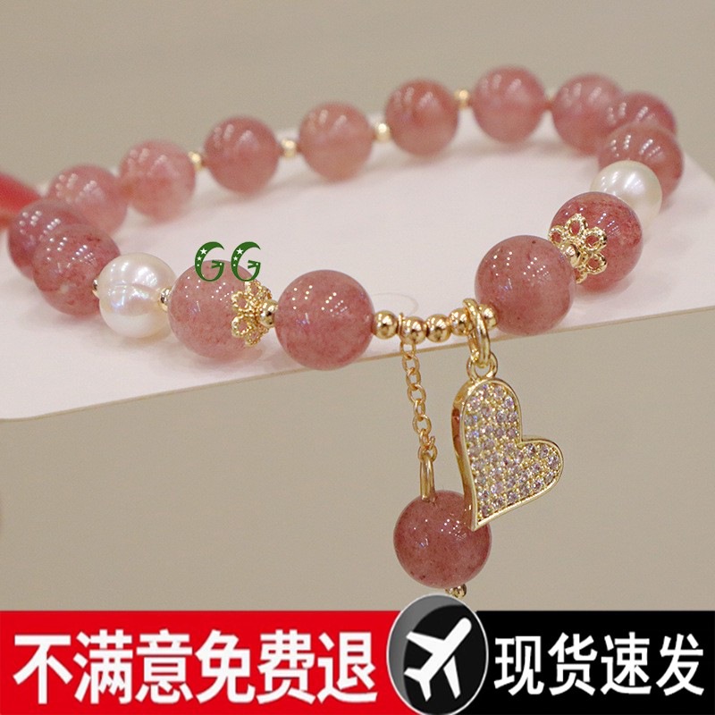 ニッチハイエンド天然水晶ストロベリークリスタルパール 14 パックゴールドブレスレット女性のニッチブレスレットジュエリーブレスレット