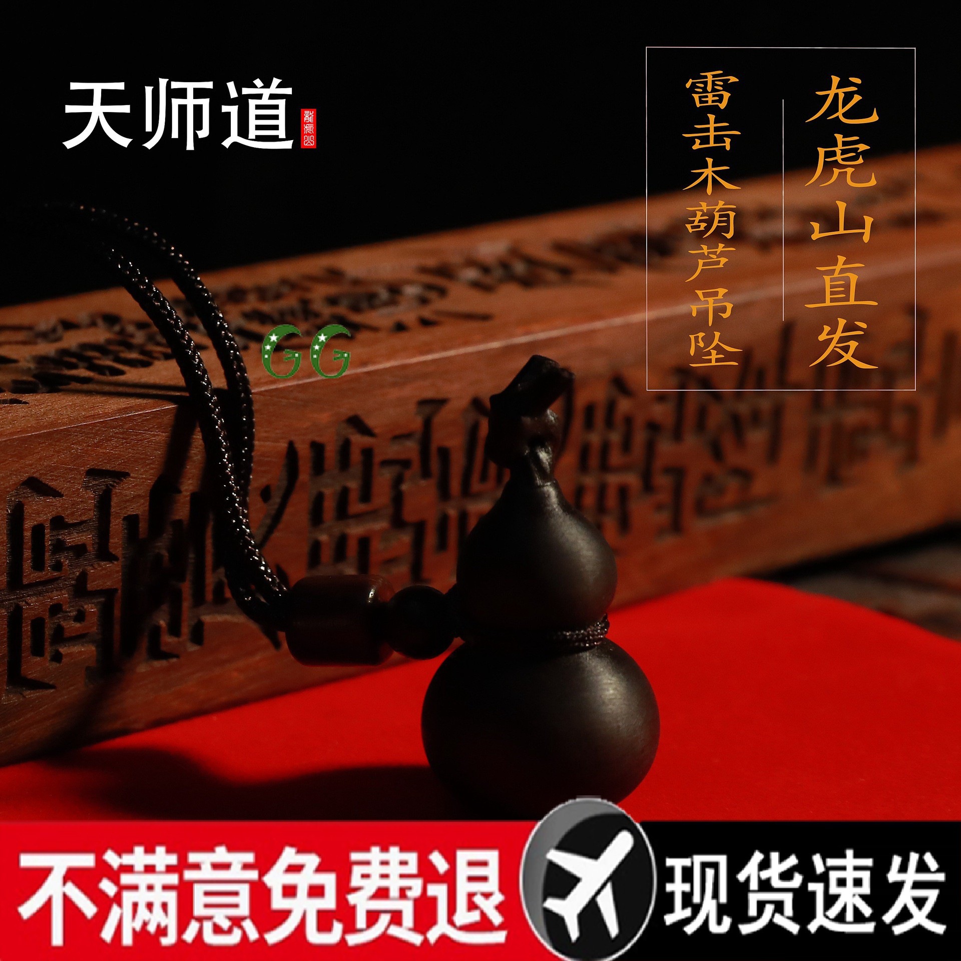 道教の天然雷ナツメ木の福宝ひょうたんペンダント、雲の平和の車のペンダントなし