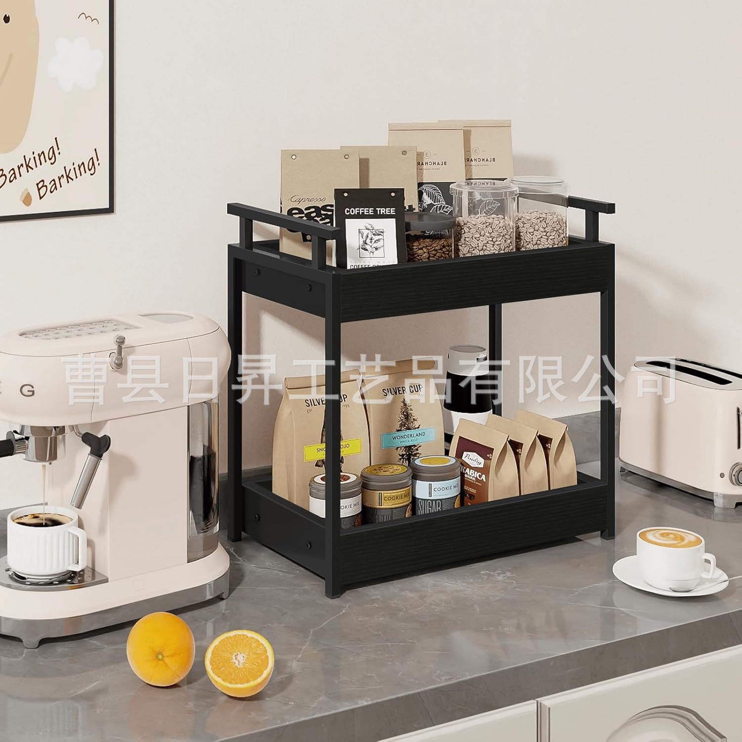 1688木製カウンタートップ収納ラック 2 層コーヒーステーション収納ラックキッチンスパイスラックバスルームカウンター収納ラック収納ラック