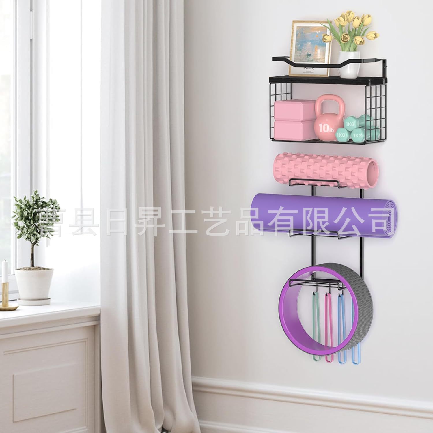1688ヨガマットホルダーアクセサリー壁掛け収納装飾フォームローラーとタオル収納ラックフックと木製ラック付き