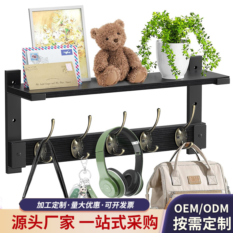 1688鉄と木材を組み合わせた壁掛けバスタオルラック、木板付きバスタオルフックラック、多機能壁収納ラック