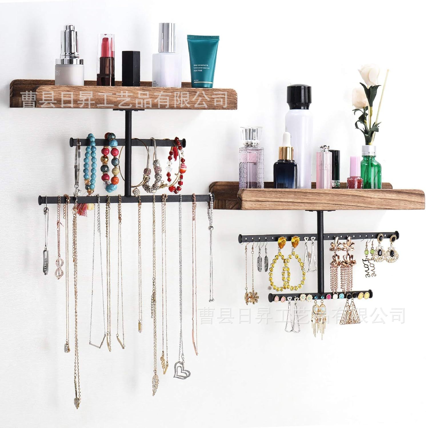 1688木製ベースの鉄製イヤリングネックレスディスプレイラック化粧品収納ラック壁掛けジュエリー収納ラック