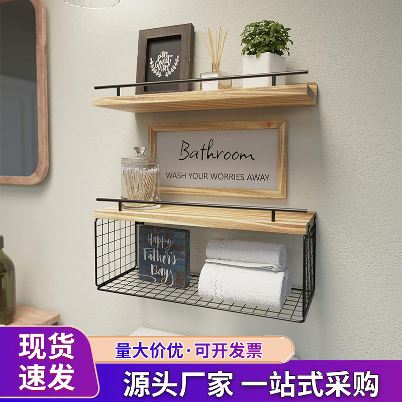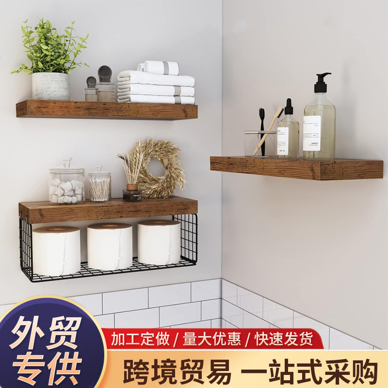 クロスボーダー壁掛け式無垢材ラック浴室タオル洗面用品収納棚リビング懸濁収納棚