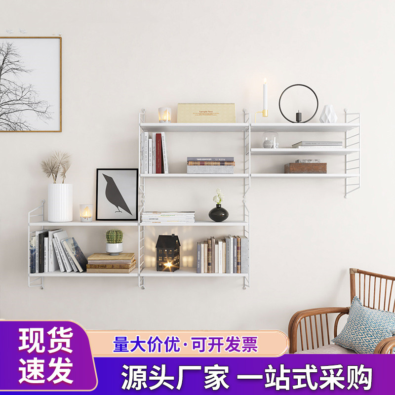 鉄芸の壁の物置棚は穴を開けないで客間の壁面を飾って1字の仕切り板の寝室の壁の本を飾って壁掛けを収納します。