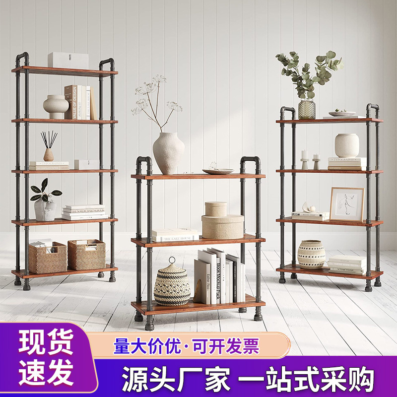 北欧の鉄芸の床置き式の物置棚の家庭用の客間の多層の雑物の置物の収納棚の本は木の支柱を展示します。
