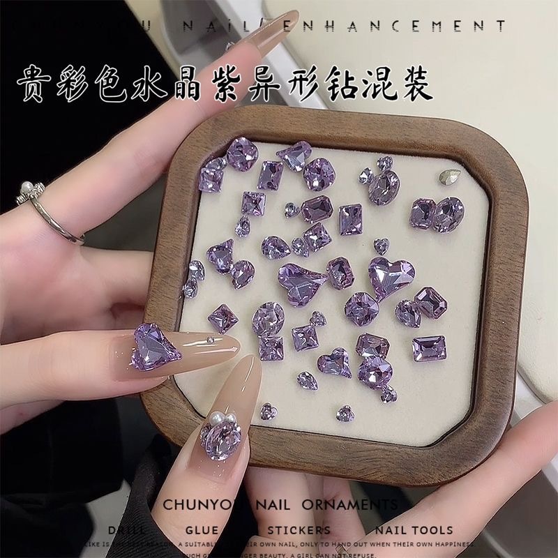 新しい混合ライトパープルネイルアートダイヤモンドスーパーフラッシュクリスタルガラスダイヤモンドパープルオーバルダイヤモンドシリーズスクエアダイヤモンドネイルアートジュエリー
