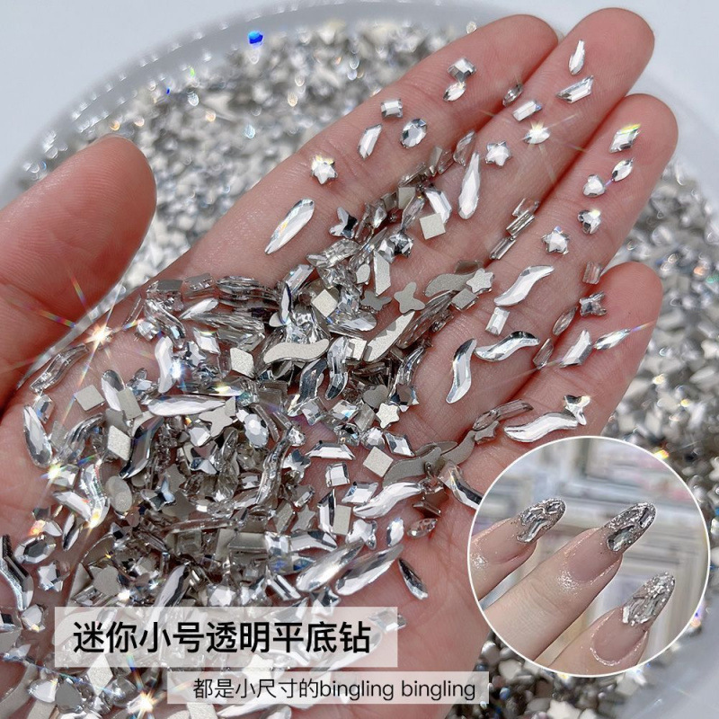 ホット販売スーパー中国白平底特殊形状小さなダイヤモンド混合ネイルアート装身具クリスタルネイルアート装身具ダイヤモンド DIY