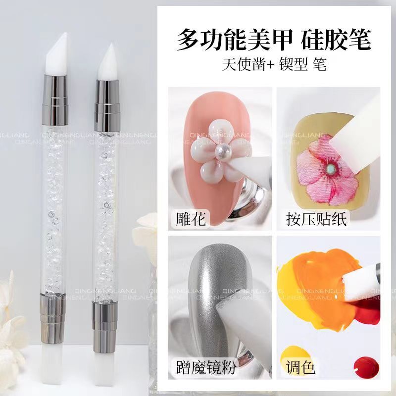 マニキュアツールソフトシリコンペンエンジェルチッピングブラシ多機能プレスステッカーパウダーシリコンペンソフト双頭