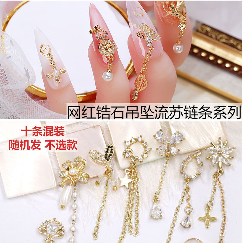 インターネットセレブライト高級マニキュアリボンラブダイヤモンドジュエリーチェーンタッセル混合ネイルアクセサリーなし