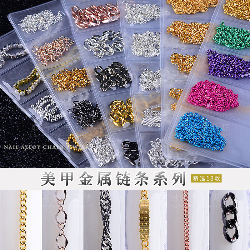 ネイルアートチェーンセット ネイルレディースメタル 和風小チェーン アクセサリー アクセサリーチェーン 人気のストリップチェーン 6種類の組み合わせ