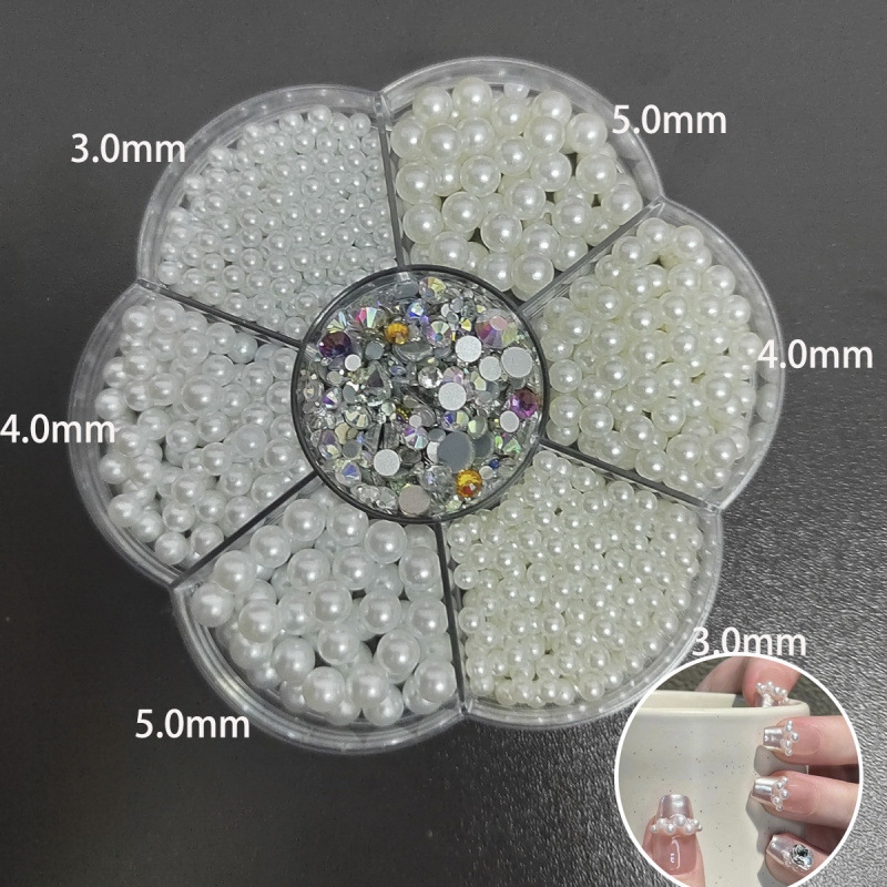 ネイルアート小物、半円パールダイヤモンド、ラウンドネイルアートパールダイヤモンドミックス、24グリッドネイルダイヤモンドジュエリー、人気スタイル
