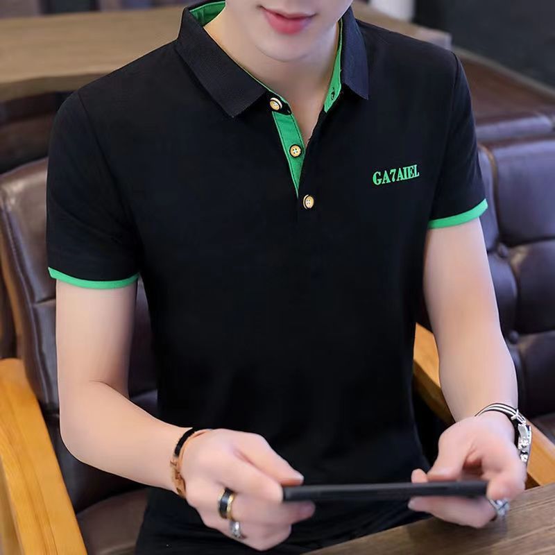 メンズ半袖Tシャツ2024夏韓国風半袖トレンド万能Tシャツカジュアルメンズスタンドカラーポロシャツ