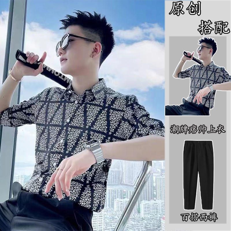 メンズ夏ヤッピースタイル英国ハンサムサマードレス五分袖半袖トップスーツ